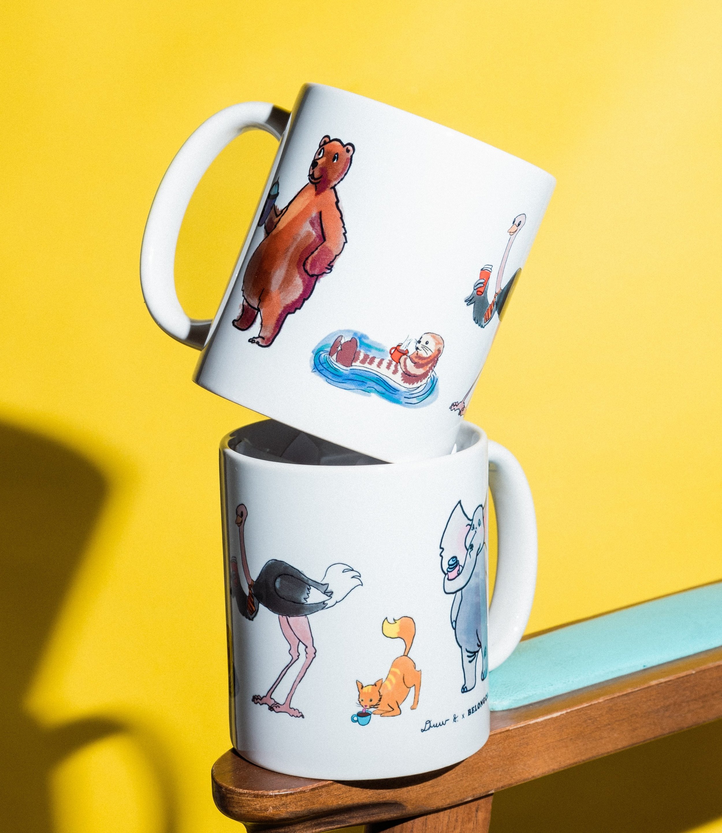 Coffee cups with custom artwork that Drew created for the Belong Co., a Boise nonprofit that creates job opportunities for adults with disabilities